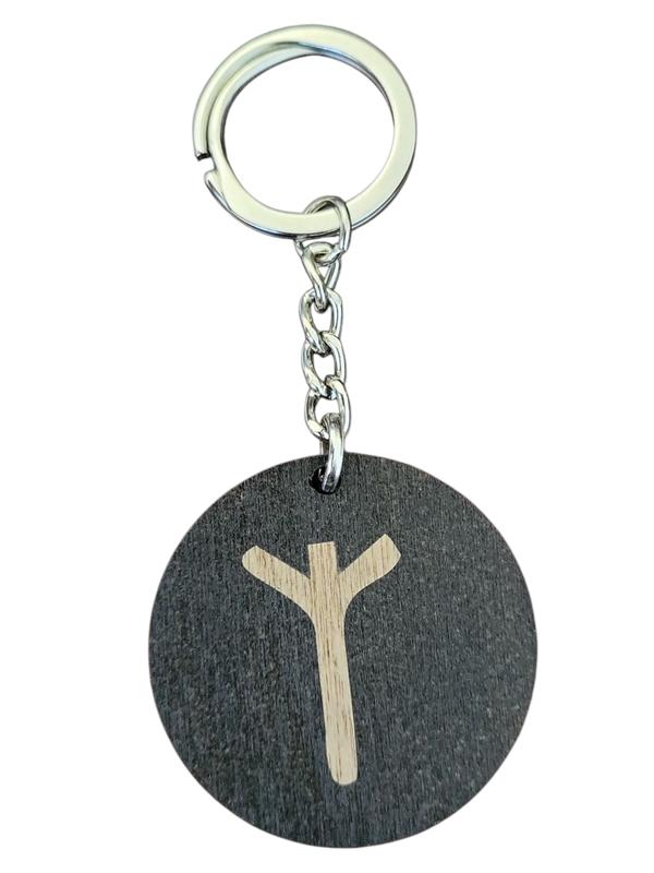 Брелок деревянный для ключей с руной изменений Альгиз Длина: 92 мм двухсторонний