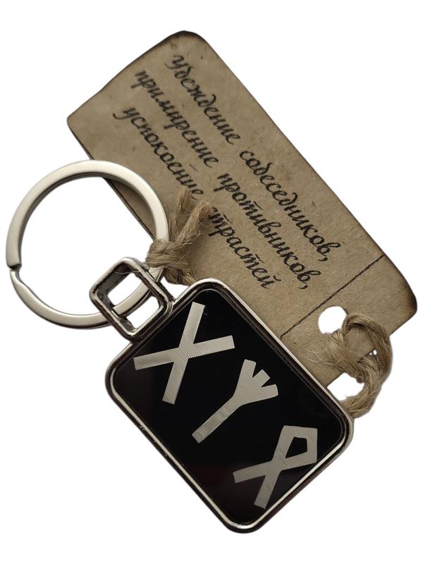 Брелок металлический для ключей с рунической формулой примирения 76мм двухсторонний