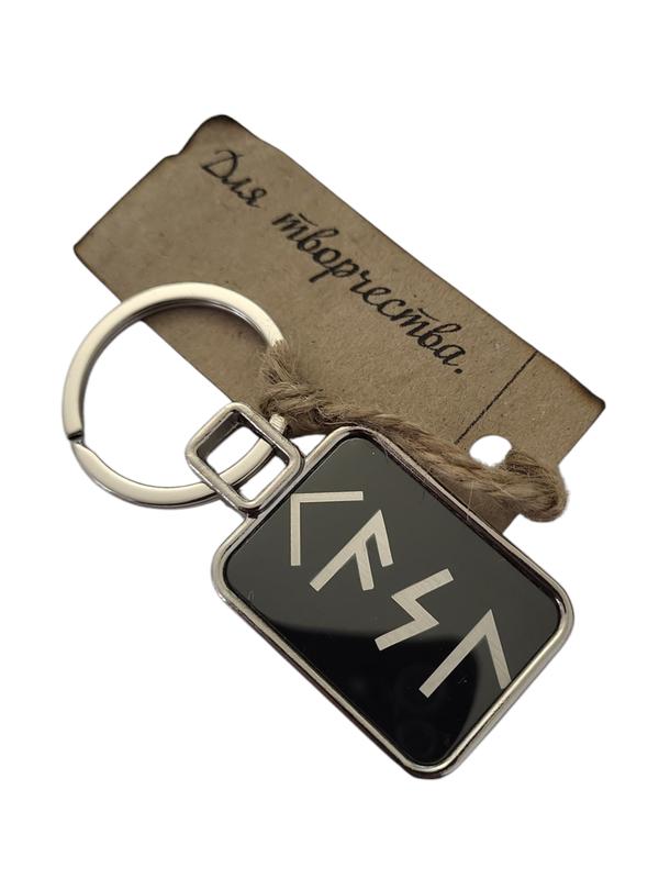 Брелок металлический для ключей с рунической формулой творчество 76мм двухсторонний