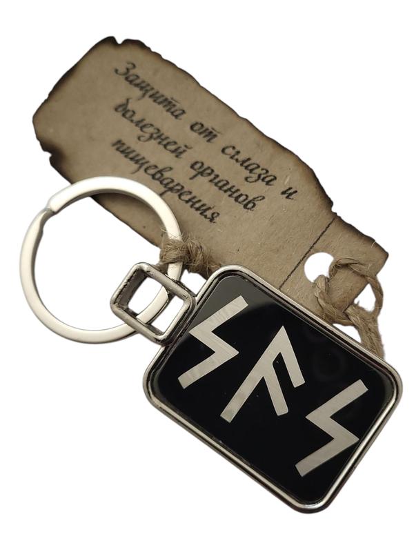 Брелок металлический для ключей с формулой рун Соулу-Ансуз-Соулу Защита от сглаза и болезней органов пищеварения Длинна: 76мм двухсторонний