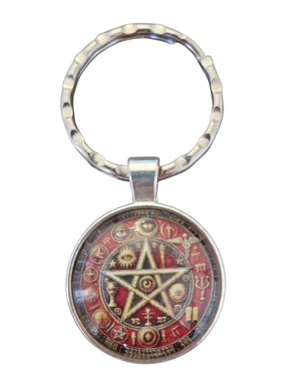 Брелок амулет металлический для ключей пентакль красный 54 мм