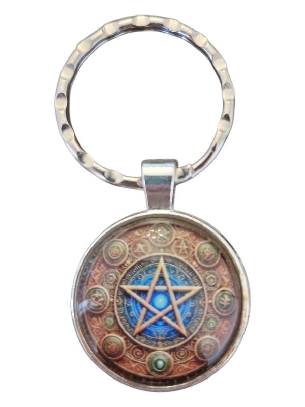 Брелок Амулет металлический для ключей Пентакль коричневый Длина: 54 мм Цвет: серебристый