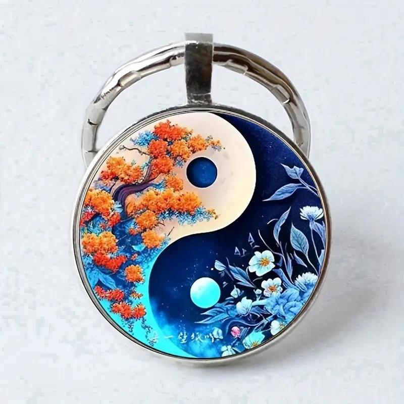 Брелок амулет металлический для ключей инь-янь бонсай цветы 54 мм