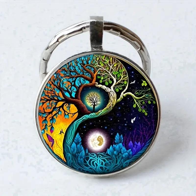 Брелок амулет металлический для ключей инь-янь бонсай ночь 54 мм
