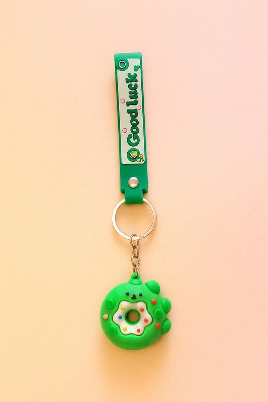 Брелок "good luck" с зелёным пончиком и лапкой