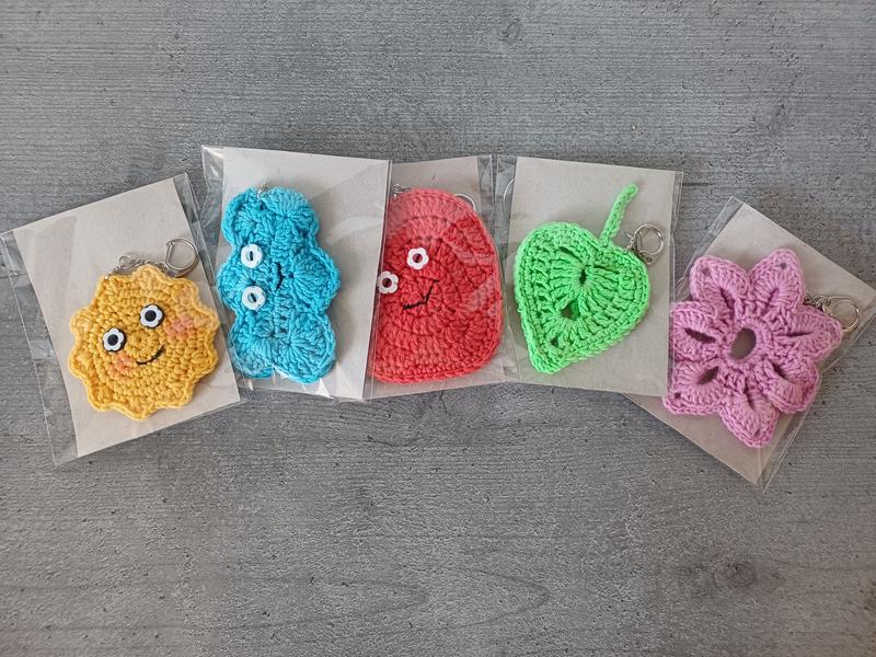 Набор вязаных брелоков «Настрой» — это стильные аксессуары ручной работы, созданные крючком с заботой и любовью 💛. В комплекте 5 брелоков: ☀️ Солнце (радость), ☁️ Тучка (спокойствие), ❤️ Сердце (любовь), 🍃 Листочек (гармания) и 🌸 Цветок (нежность). Каждый брелок можно прикрепить к сумке, рюкзаку или ключам, выбирая его соответственно своему настроению. На обороте упаковки есть подсказка с значением каждого символа. Этот набор станет отличным подарком для девушки, подруги или близкого человека 🎁. Вязаные брелоки выглядят ярко и оригинально, сочетая красоту handmade и практичность. Цена за весь набор 5 шт