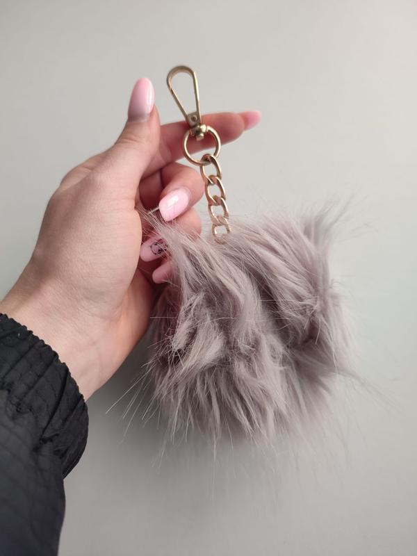 Пушистый брелок бумбон, брелок на сумку из искусственного меха серый, подвеска на сумку бр...