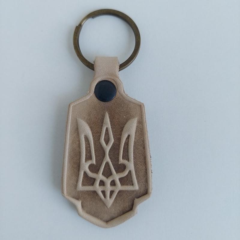 БРЕЛОК - "Тризуб" бежевий (28945) Стильный кожаный брелок «Тризуб – геометрия» бежевого цвета – патриотический аксессуар, который подчеркивает любовь к Украине. Выполнен из натуральной кожи, высота 100 мм. Удобный и прочный – идеально подходит для ключей или сумки.