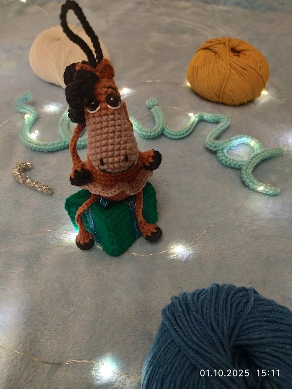 Символ 2026 года, лошадка брелок, ее рост 15,5см от ушек до подков) связана из пряжи Ярнарт джинс, крючком 2мм. В наличии!