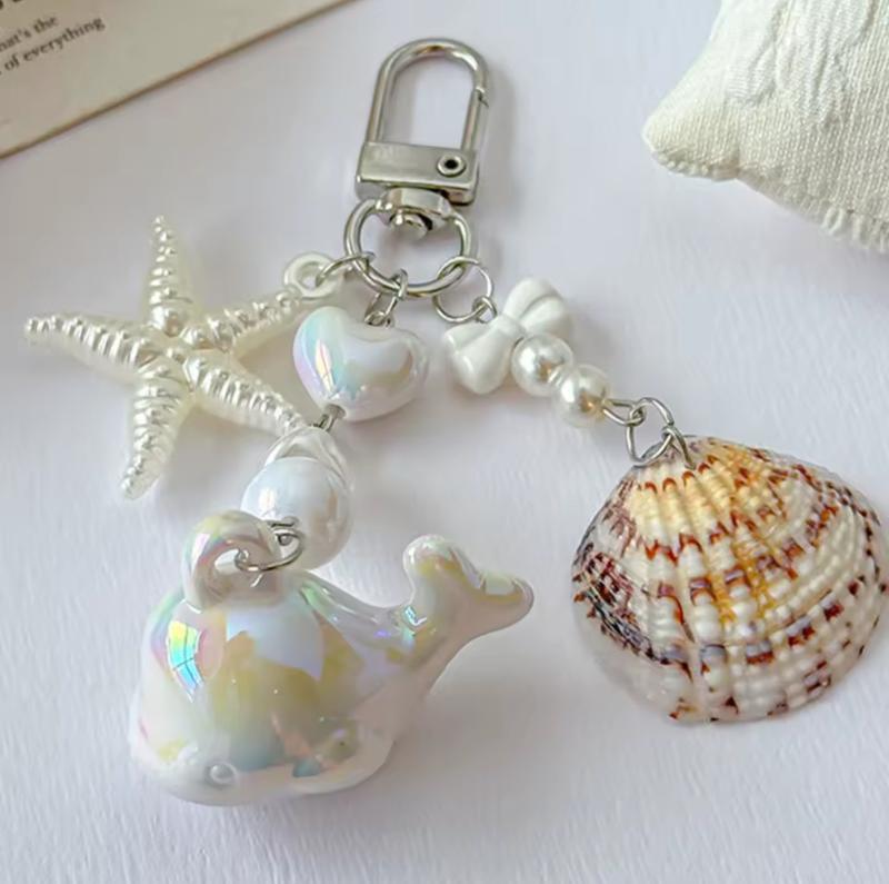 Брелок підвіс з мушлею стильна прикраса на сумку