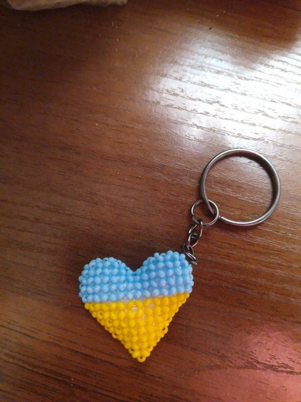 сердечко патриотическое материал: чешский бисер, леска фурнитура: кольцо с цепочкой