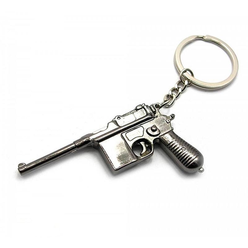 Оригінальний брелок Маузер як підвіс має модель легендарного автоматичного пістолета Маузера, виготовлену з металу вороняного кольору. На сталеве кільце діаметром 3 см можна одягнути велику зв'язку ключів.
