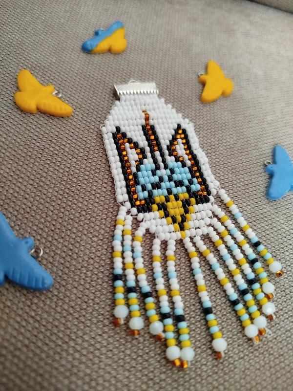 Патриотический брелок из бисера в виде украинского тризуба – это не просто аксессуар, а символ любви к Родине, силе духа и единства. Ручная работа, идеальное сочетание желто голубых, белых и черных оттенков создают яркий и стильный образ. Бисерная подвеска с подвижными нитями добавляет изделию динамики и оригинальности, а металлическое крепление позволяет легко закрепить брелок на ключах, рюкзаке или сумке. Это идеальный подарок для себя или близких – каждая бусинка передает тепло рук мастера и искреннюю любовь к Украине. Такой брелок хочется носить с гордостью! Не упустите шанс приобрести настоящий защиту! 🇺🇦✨