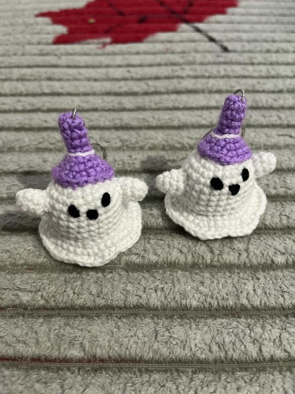 Брелок на Хеловін привид у капелюшку. Висота 5 см. Нитка 50% бавовна 50% акрил. Ціна вказана за одну штуку.