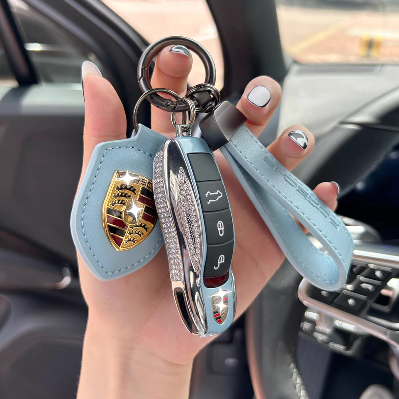 Голубой брелок со стразами для ключа porsche