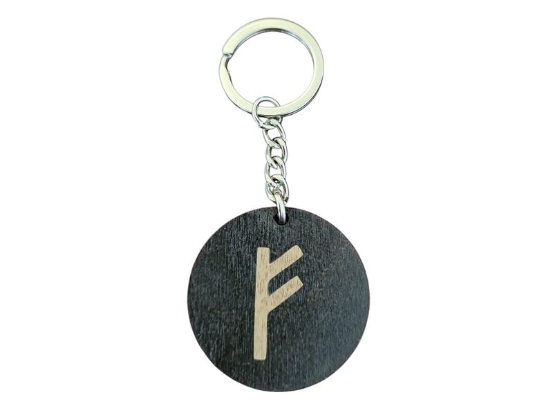 Брелок деревянный для ключей с руной богатства феу,феху 92 мм двухсторонний