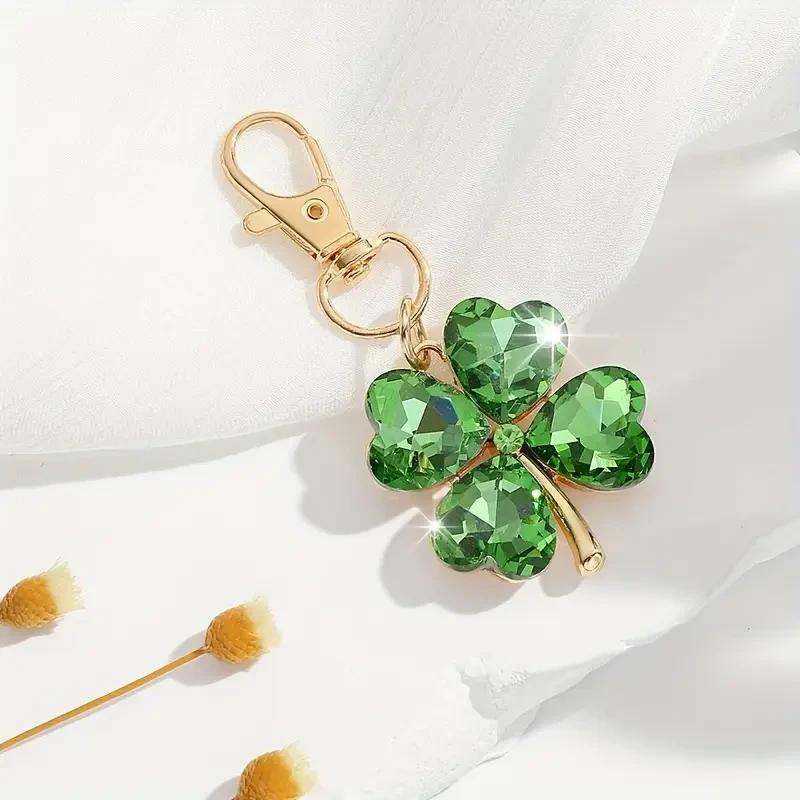 Брелок металлический для ключей четырьохлистный клевер изумрудный 68 мм