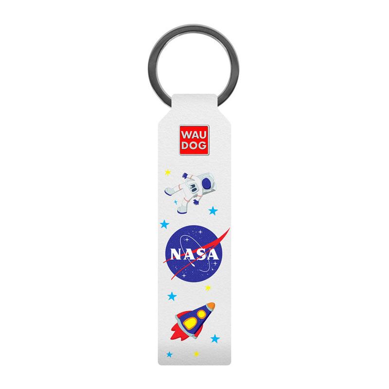 Брелок waudog design с рисунком "nasa", премиум кожа (ширина 20мм, длина 95мм) белый