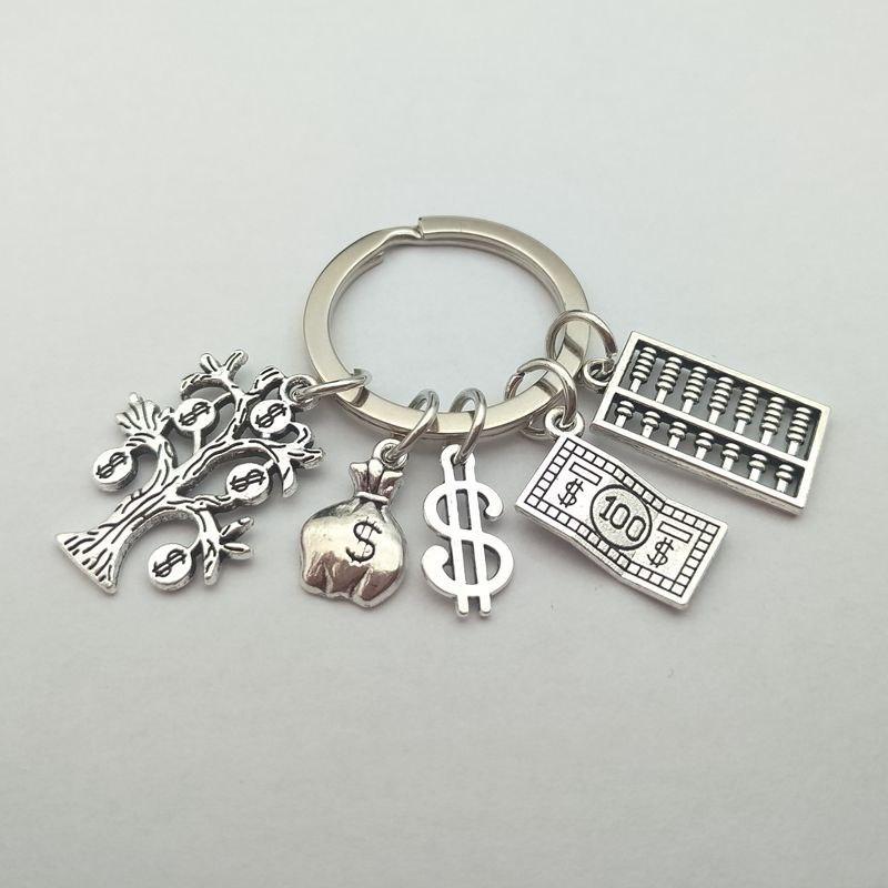 Брелок с денежным деревом, купюрой, символом доллара и счетами / брелок для бухгалтера / п...