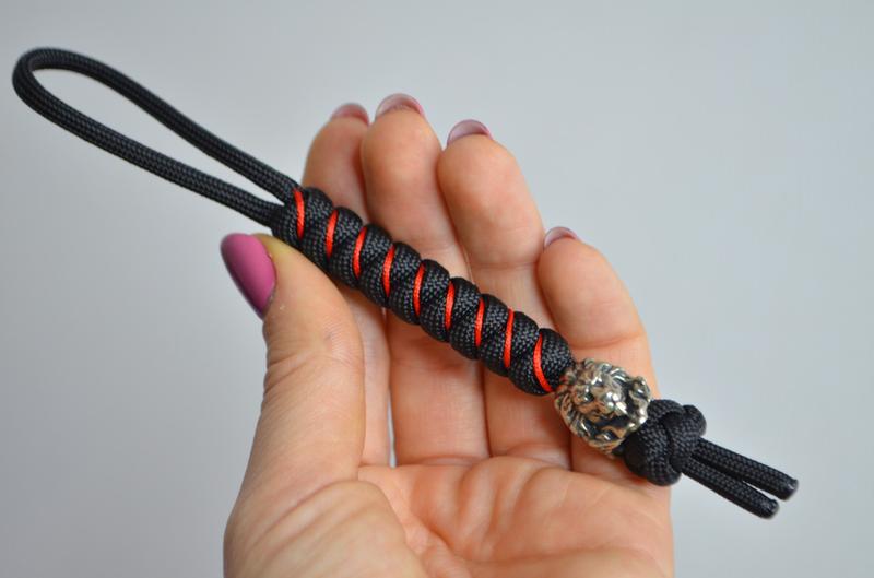 Брелок темляк со львом и оплеткой из паракорда