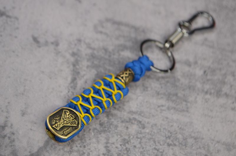 Темляк-брелок на карабине с бусиной альгиз и руной ингуз из латуни ручного литья