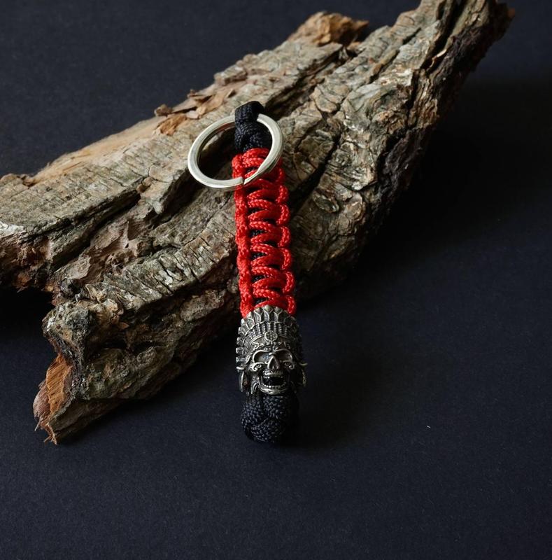 Брелок с бусиной вождь ацтеков в паракордовом плетении