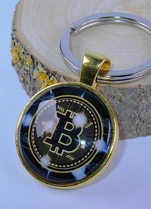 Брелок для ключей "Биткоин". Металл, стекло, размеры: длина общая 6,00 см., диаметр 2,80 см., вес 12.24 грм.
