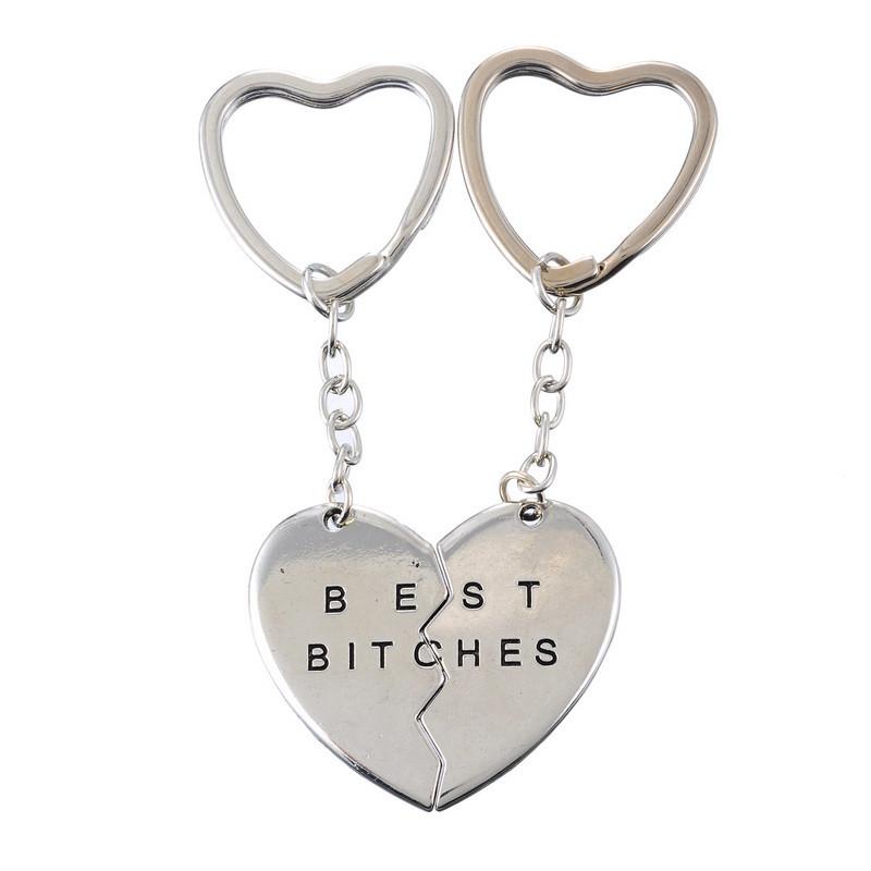 Кольца и цепи для ключей, брелок, разбитое сердце, серебряный тон, надпись " best bitches"...