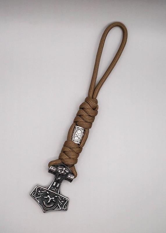Темляк из паракорда snake knot cо скандинавской бусиной и молотом тора, цвет изделия под з...