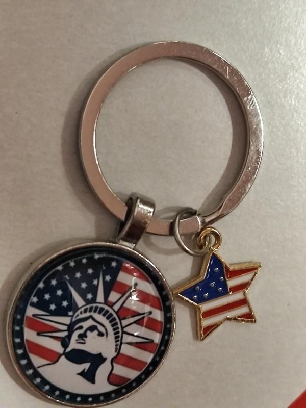 Брелок на ключи флаг звезда usa сша америка стекло и металл статуя свободы