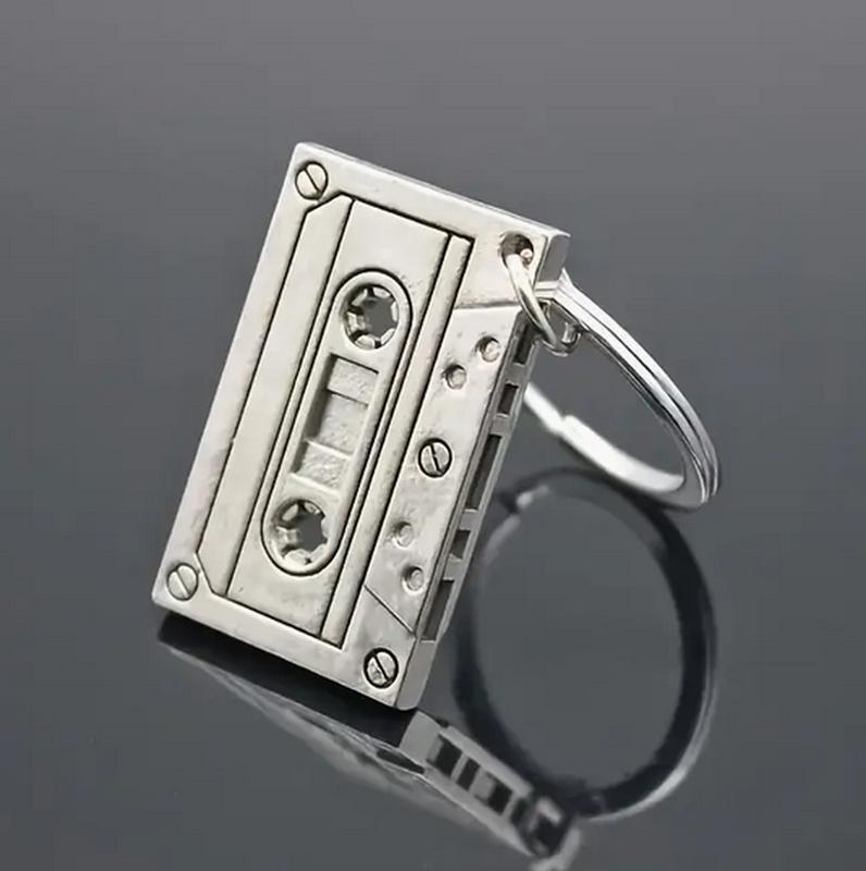 Брелок на ключи серебристый металл ретро кассета обьемная 4см