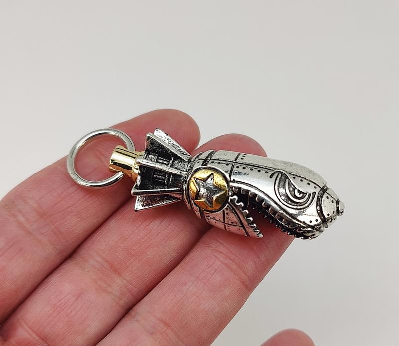 Брелок-подвес «Акула». Материал - металл, длина 6,50 см., диаметр 2,00 см., вес 32.00 грм., диаметр кольца 1,60 см.