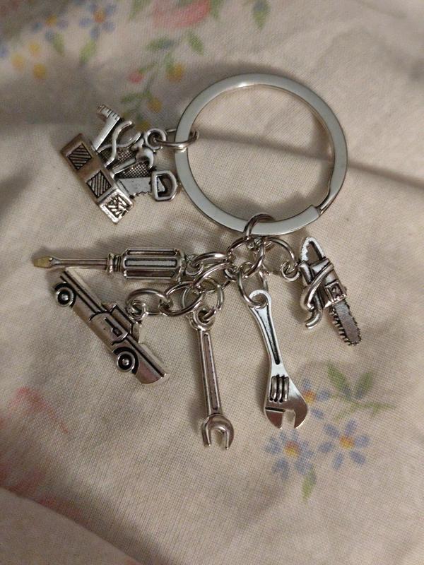Брелок на ключи ремонт бензопила гаечный ключ отвертка инструмент машина авто