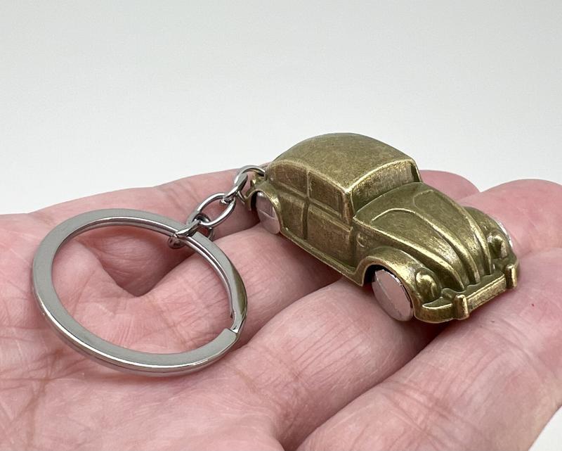 Брелок для ключей "Фольксваген -Жук" (цвет - бронза). Металл (колеса крутятся), размеры: общая длина 11,20 см., ширина 1,90 см., вес 21.60 грм., цвет - бронза.