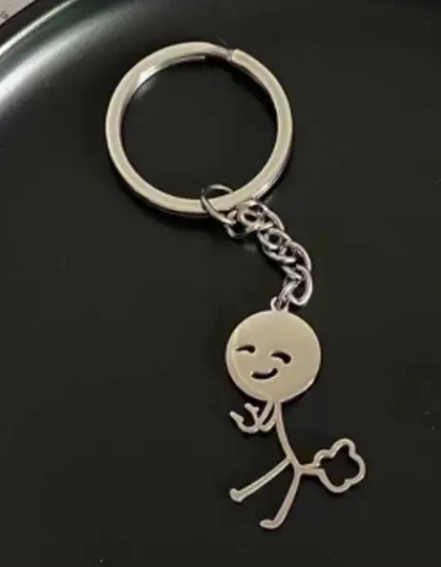 Брелок на ключи серебристый металл человечек человек почти 5 см веселый пукнул сорри