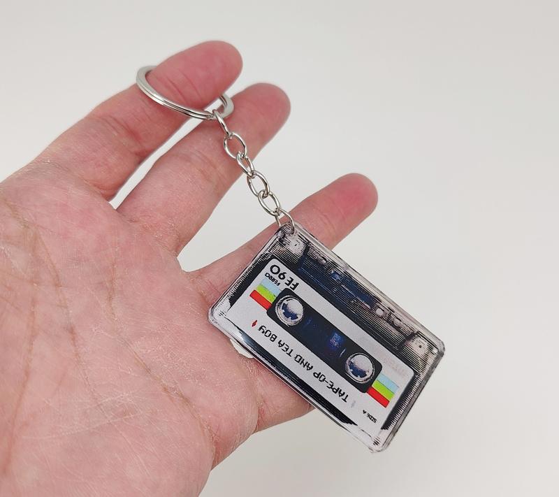 Брелок для ключей "Аудио-кассета" (цветной акрил). Размеры: длина общая 13,00 см., длина Кассеты 6,00 см., ширина 4,00 см., толщина 0,40 см., вес 14.50 грм., отличное качество изготовления брелка.