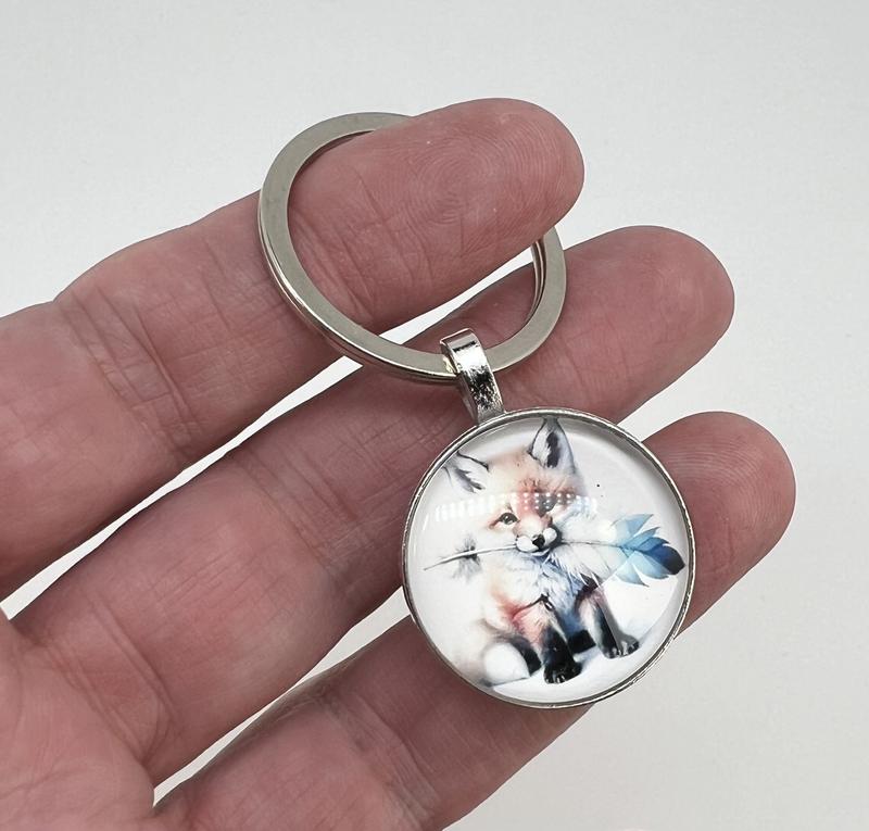 Брелок для ключей «Лиса». Материал - метал/оргстекло, длина 6,00 см., диаметр 3,60 см., толщина 0,60 см., вес 15.00 грм., диаметр кольца 3,00 см.