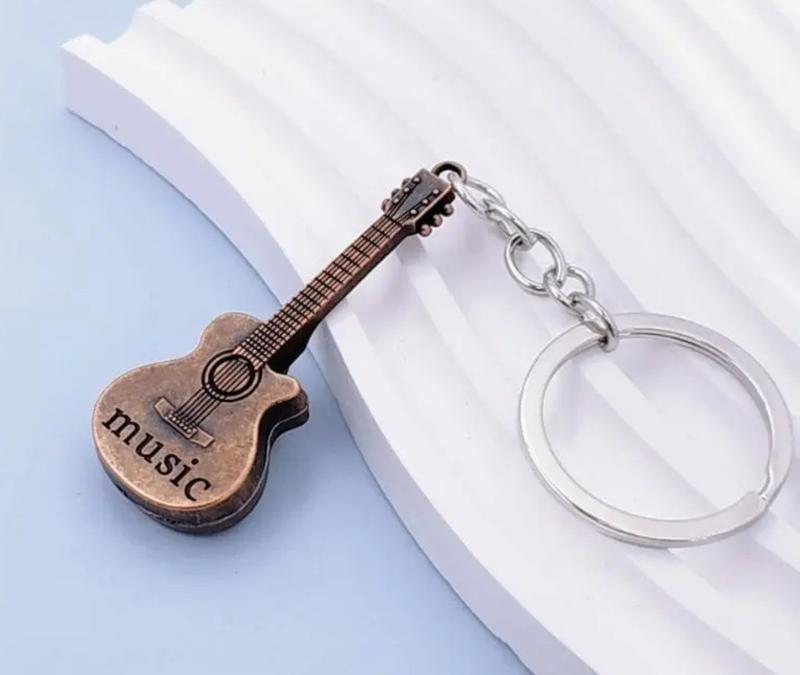 Брелок для ключів "Гітара" (колір — мідний). Метал, розміри: довжина загальна 11,00 см, ширина 2,00 см, товщина 0,70 см, вага 11.00 гм.