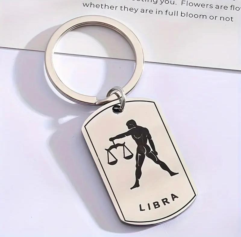 Брелок знак зодиака «Весы». Общая высота брелка 7,30 см., ширина 2,50 см., толщина 0,20 см. Материал - металл, вес 16.85 грм.
