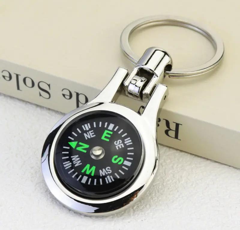 Брелок с компасом. Металл, размеры: общая длина брелка 8,00 см., диаметр 3,40 см., толщина 1,00 см., вес 33.00 грм., диаметр кольца 3,20 см.
