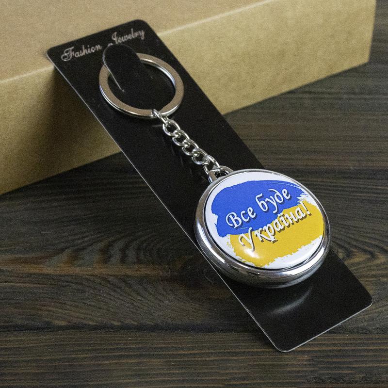 Брелок 6979 объемный Все буде Україна - Символ Веры и Несокрушимости! Этот эмоциональный объемный двусторонний брелок является мощным символом надежды, веры и патриотизма, идеально подходит для тех, кто несет несокрушимость в своем сердце. Брелок выполнен в форме круглого медальона с глянцевым покрытием. Фон украшен выразительными, динамическими мазками синей и желтой краски, имитирующими флаг. Брелок является двусторонним с разным принтом, объединяющим два ключевых патриотических символа: С одной стороны — вдохновляющая фраза Все буде Україна!, написанная элегантным шрифтом С другой стороны, Государственный Герб Украины (Тризуб), выполненный белым цветом, контрастирует с ярким фоном. Аксессуар выражает сильную эмоциональную поддержку, веру в победу и национальную гордость. Благодаря своей прочности и яркому дизайну, он прекрасно подходит для ключей, сумок, рюкзаков, а также популярным и значимым подарком среди патриотов и волонтеров. Носите свою веру в победу каждый день с этим мощным брелоком!