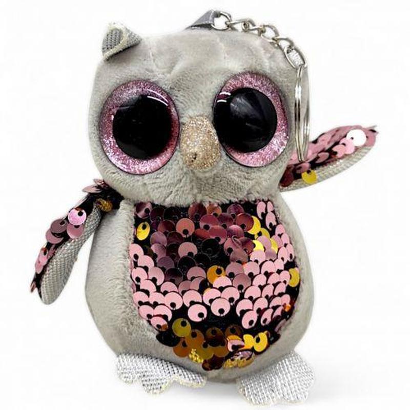 Брелок м'який "сова-глазастик", 10 см, сіра
