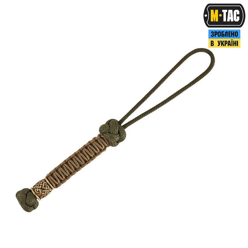 Темляк из плетеного паракорда – это стильное декоративное украшение, которое придаст оригинальности вашим аксессуарам и подчеркнет индивидуальность владельца. Это своего рода запасной шнур, который всегда под рукой. Также темляк значительно упростит извлечение ножа из кармана или его поиск среди снаряжения. Декоративная бусина с кельтскими мотивами придаст особую изюминку темляку. Данный аксессуар станет незаменимым помощником при использовании ножа, фонарика или другого схожего по размерам снаряжения.