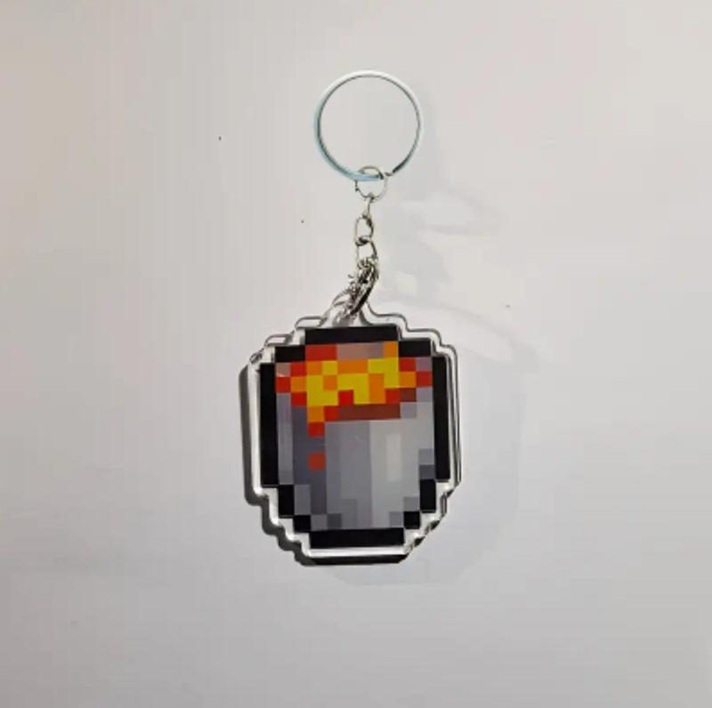 Брелок minecraft «ведро лавы» — акриловый пиксель-арт, карабин + кольцо, для ключей и рюкз...