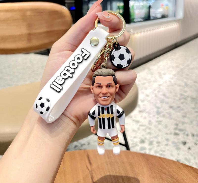 Роналду брелок - це знаковий аксесуар для всіх шанувальників футбольної зірки. Виготовлений з якісного матеріалу та має оригінальний дизайн. Брелок можна використовувати як ключницю, або просто як прикраса для сумки або рюкзака. Він не тільки надасть стильності вашому образу, а й підкреслить вашу любов до футболу та Кріштіану Роналду. Цей брелок стане чудовим подарунком для будь-якого фаната футболу, особливо якщо вони підтримують Роналду та його команду. Він також може бути чудовим доповненням до колекції аксесуарів зі знаковими футбольними гравцями. Матеріал: сплав + ПВХ + стрічка.