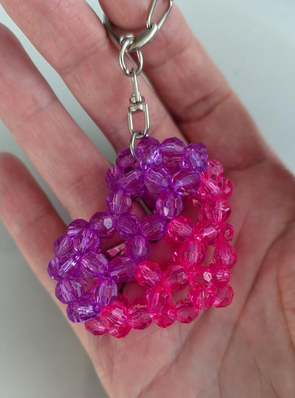 Брелок Сердце из граненых бусин двух цветов. Ручная работа. Размер - 4 х 5 см.