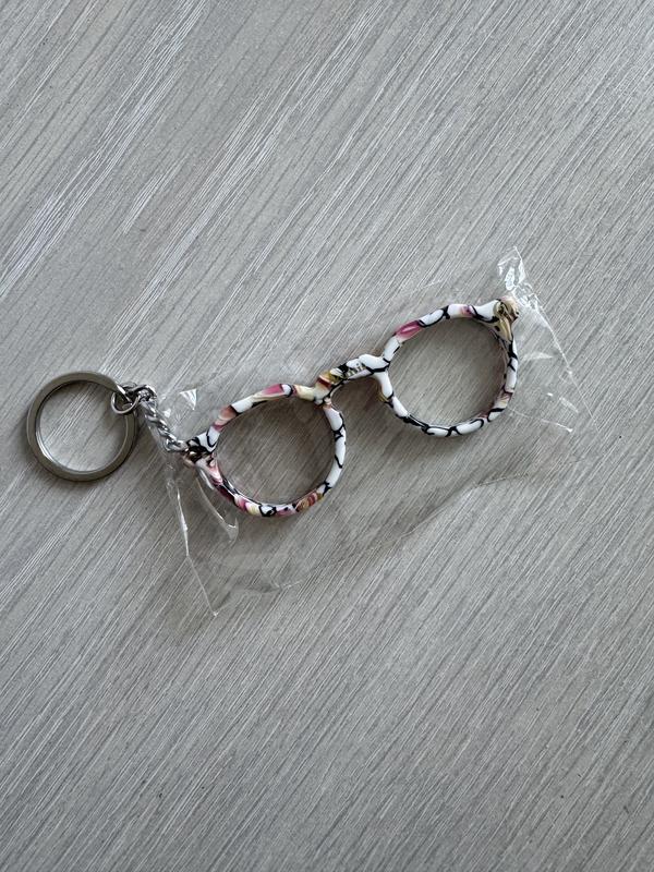 Брелок для ключів у вигляді мініатюрних окулярів із строкатим візерунком. Ціна 95 грн Оплата на карту продавцю