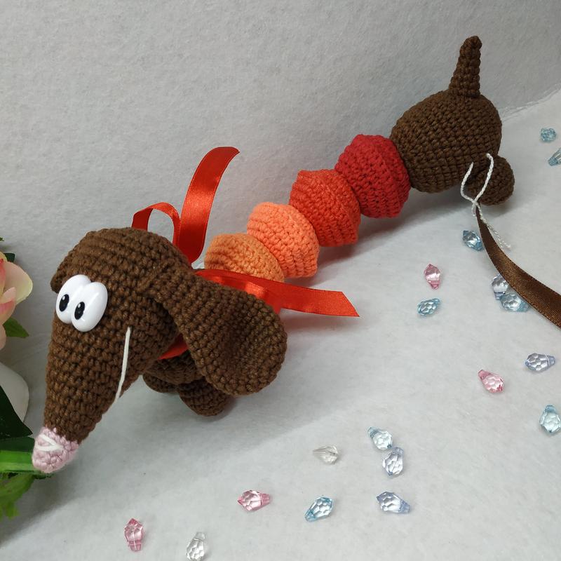 Брелок собака такса ручної роботи пов'язана гачком з бавовняної пряжі порадує дорослих і дітей 💖