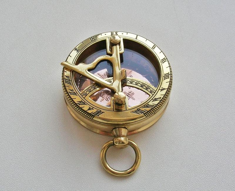 Брелок Карманный латунный компас с солнечными часами. Новый Диаметр 6 см