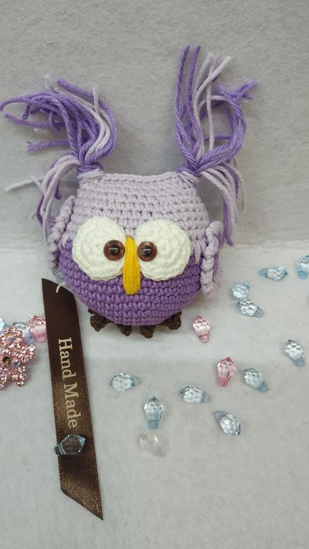 Брелок сова ручной работы связан крючком из хлопковой пряжи порадует взрослых и детей